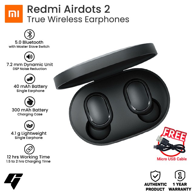 Xiaomi Redmi Airdots 2 Wireless Bluetooth 5 0 Earbuds With Free Micro Usb Cable Shopee Philippines
