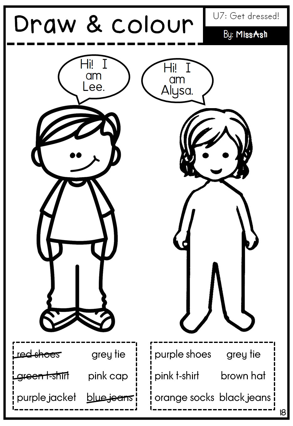 Ash The Teacher Year 2 Supplementary Worksheets Unit 5 9 Pink Tshirt Brown Hats Orange Socks