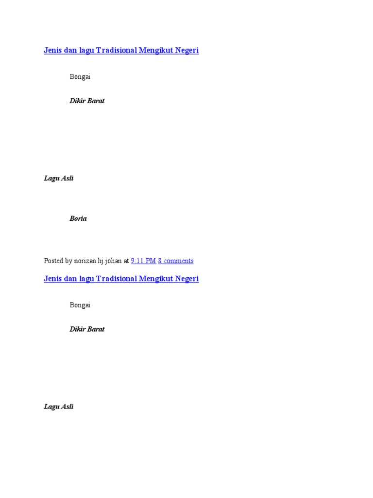 Jenis Dan Lagu Tradisional Mengikut Negeri