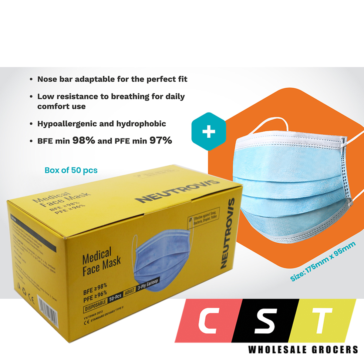 Neutrovis Medical 3 Ply Face Mask 50 S