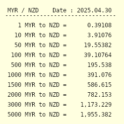 300 Nzd New Zealand Dollar Nzd To Malaysian Ringgit Myr Currency Rates Today Fx Exchange Rate