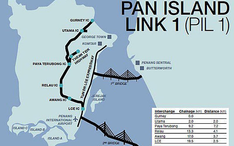 Pan island link 1 pil 1 highway project. Construction works for penang s light rail transit lrt line and the 19 5km pan island link 1 pil 1 are slated to commence in june 2020 reported the star. He said that the state government has been working with srs consortium to finalise the master agreement for the two major components from the rm46 billion penang transport master plan ptmp. Both projects are components of the rm46 billion penang transport master plan ptmp.
