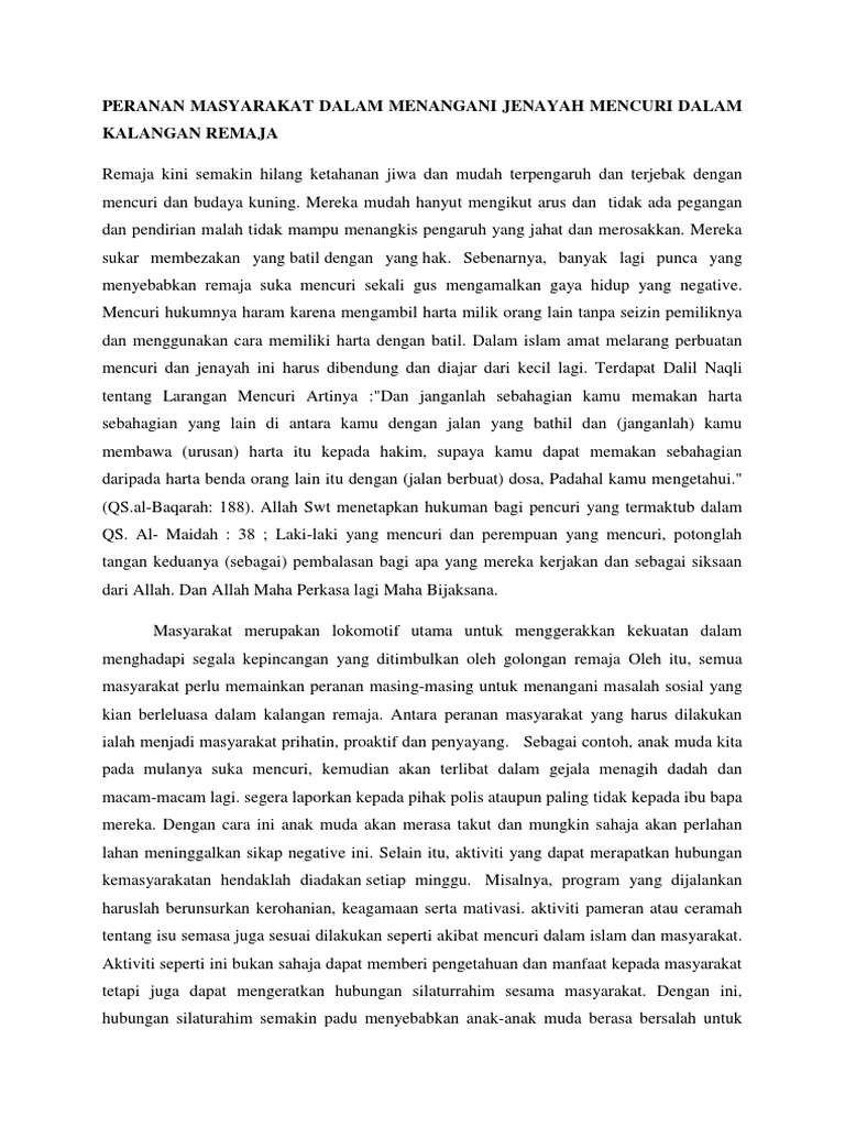 Peranan Masyarakat Dalam Menangani Jenayah Mencuri Dalam Kalangan Remaja