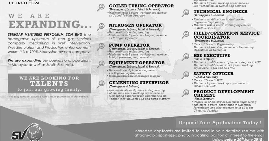 Oil Gas Vacancies Sv Petroleum Terengganu Kl Sabah Sarawak