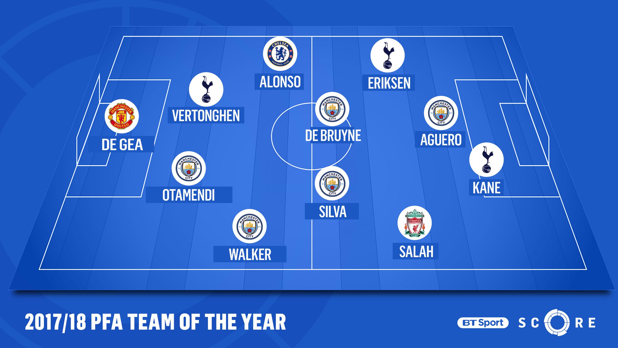 Bt Sport Score On Twitter Your Official Pfa Team Of The Year For 2017 18 De Gea Walker Otamendi Vertonghen Alonso Silva De Bruyne Eriksen Salah Aguero Kane Btsportscore Https T Co Ojamg39cqs