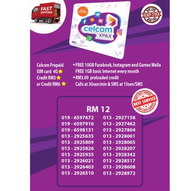 Celcom Prepaid Sim Card 4g Credit Rm3 Rm6 Shopee Malaysia