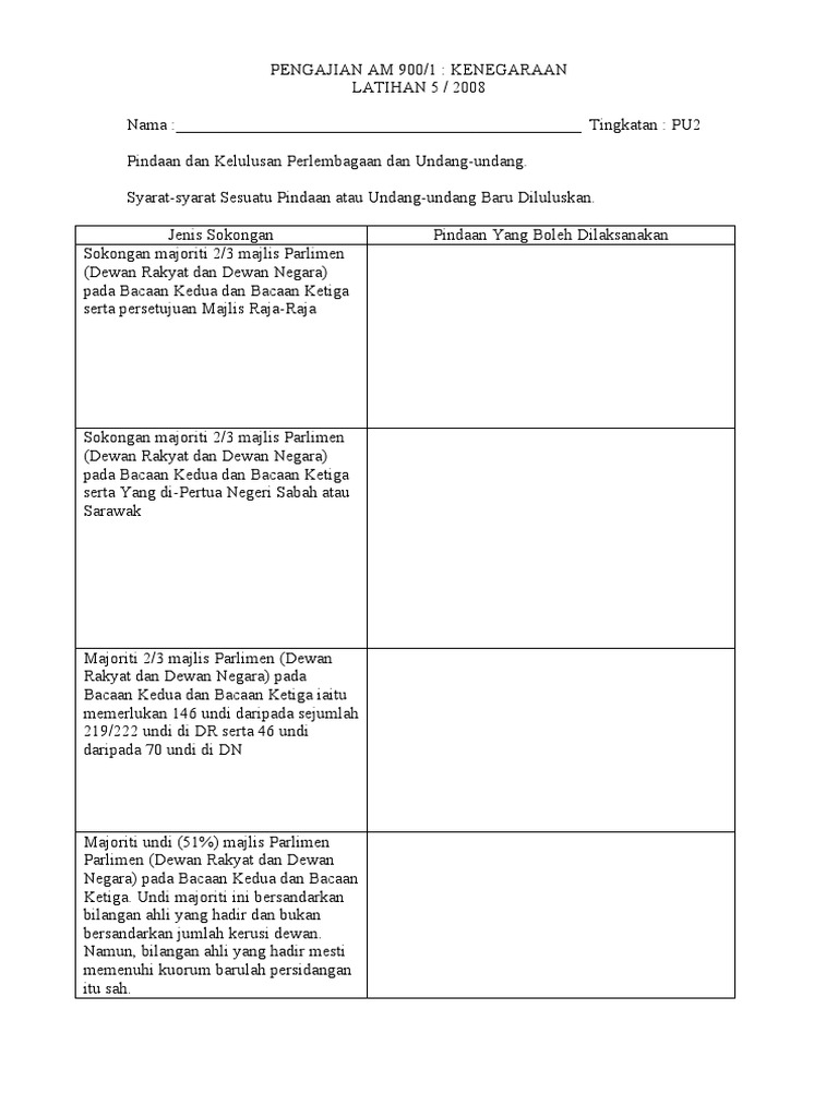 Pengajian Am 900 Latihan 5 Syarat Pindaan Perlembagaan