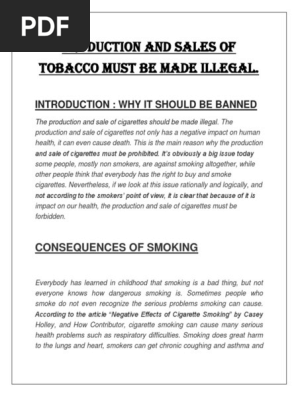 Production And Sales Of Tobacco Must Be Made Illegal Docx Tobacco Smoking Cigarette