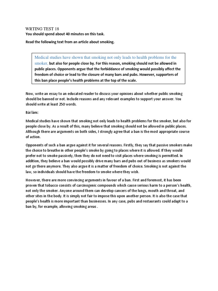 Should Smoking Be Banned In Public Areas Tobacco Is The Second Major Cause Of Death In The World A Level English Marked By Teachers Com